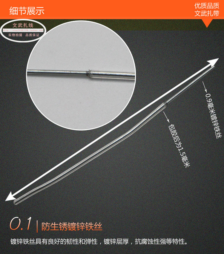 透明扎线带 包胶圆形扎线0.9 玩具透明色扎带 镀锌铁丝透明