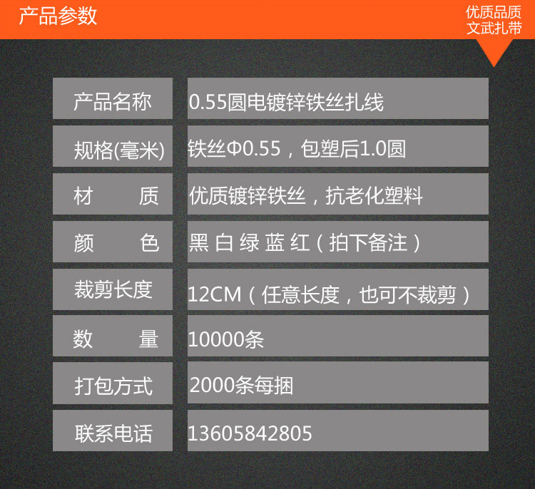 扎线带铁丝 0.55 pvc