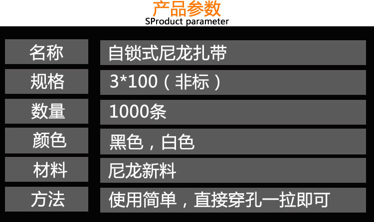 尼龙绑扎带 自锁式扎线 塑料扎丝 束线带 1000条扎带