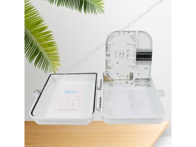光纤分纤箱适用遇FTTH网络电信网络数据通信网络局域网等,产品由优质工程塑料注塑成型,能容纳安装36芯皮线光缆,具有防紫外线冲击防水等功能,有2根光缆人口和2根光缆出口,可壁挂和抱杆安装。