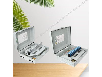 光纤分纤箱适用遇FTTH网络电信网络数据通信网络局域网等,产品由优质工程塑料注塑成型,能容纳安装36芯皮线光缆,具有防紫外线冲击防水等功能,有2根光缆人口和2根光缆出口,可壁挂和抱杆安装。