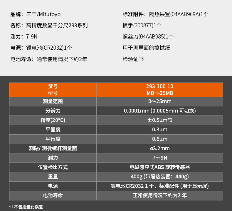 三丰数显外径万分尺防冷却液293-100 0.0001高精度
