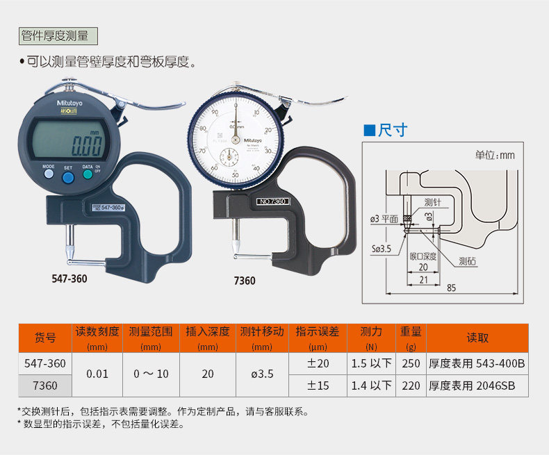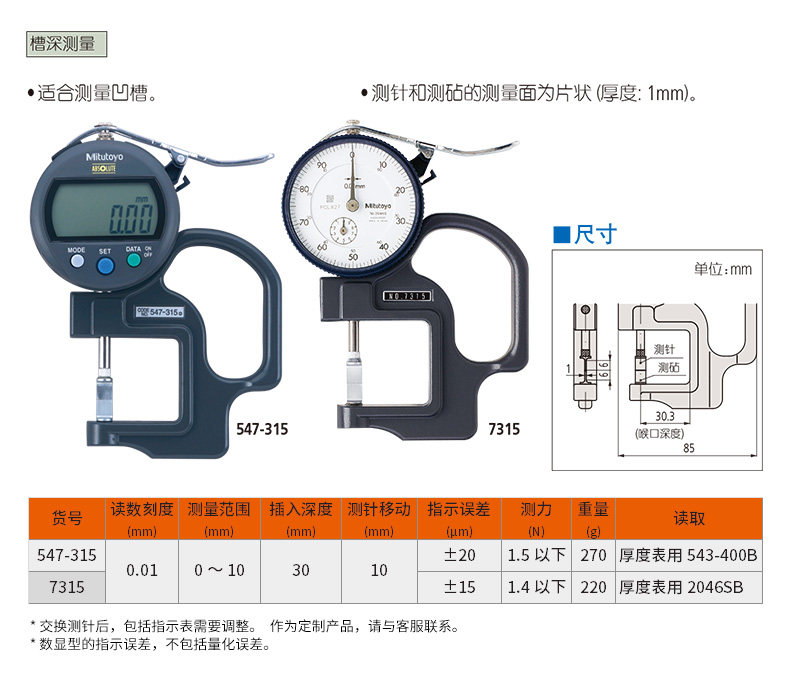 Mitutoyo三丰厚度计规测量仪7313 数显厚度百分表
