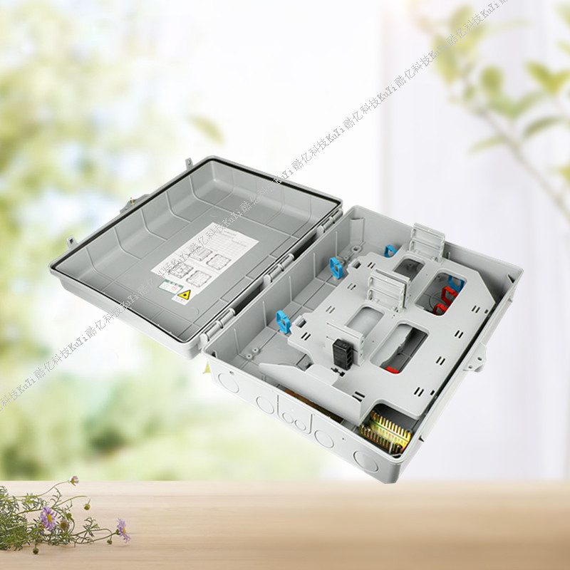 光纤分纤箱适用遇FTTH网络电信网络数据通信网络局域网等,产品由工程塑料注塑成型,能容纳安装36芯皮线光缆,具有防紫外线冲击防水等功能,有2根光缆人口和2根光缆出口,可壁挂和抱杆安装。