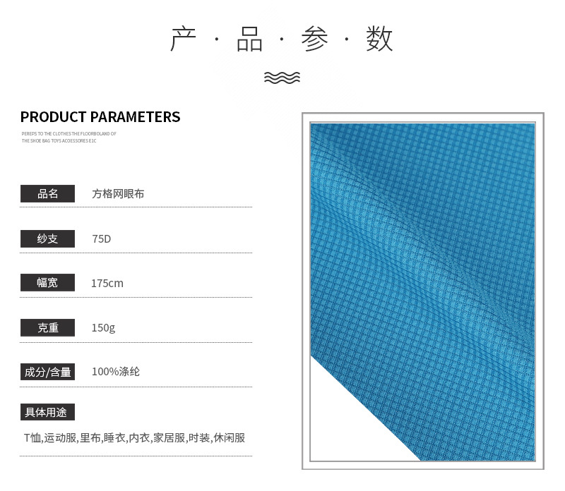 新款T恤运动衫锦纶冰丝弹力布料 供应家居服饰面料方格布
