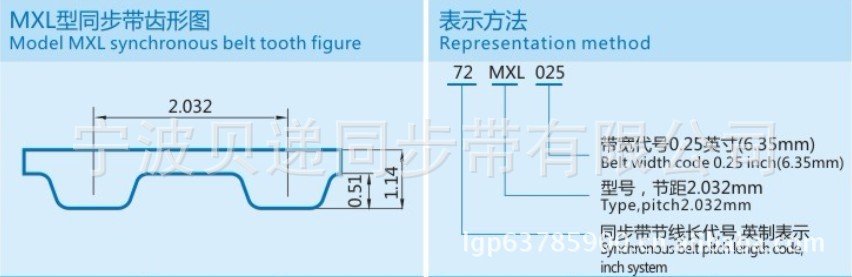 MXL型同步带齿形图
